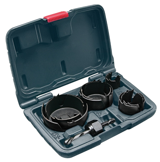 Five-piece set includes 1 In., 1-1/2 In., 2 In. and 2-1/2 In. hole saws with arbor and pilot bit