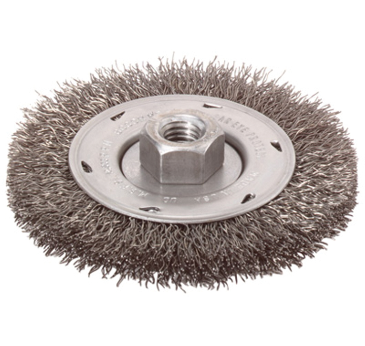 Bosch offers a full selection of crimped and knotted wire cup brushes. Bosch crimped wire wheels are made from the highest-quality crimped tempered steel with maximum wire density to ensure long life. Useful for de-burring gears, removing oxides and scale, flash removal and edge blending. The precision-balanced cup virtually eliminates vibration.
