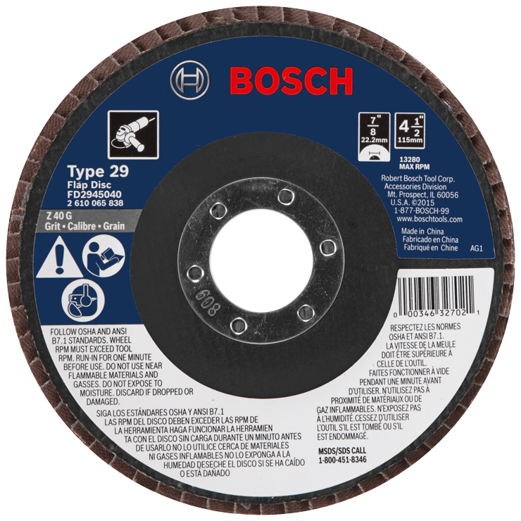 • Bosch 4-1/2 In. 7/8 In. Arbor Type 29 40 Grit Blending/Grinding Abrasive Wheel - FD2945040 – Genuine Bosch Commerical replacement part designed for a precise factory fit and reliable performance.