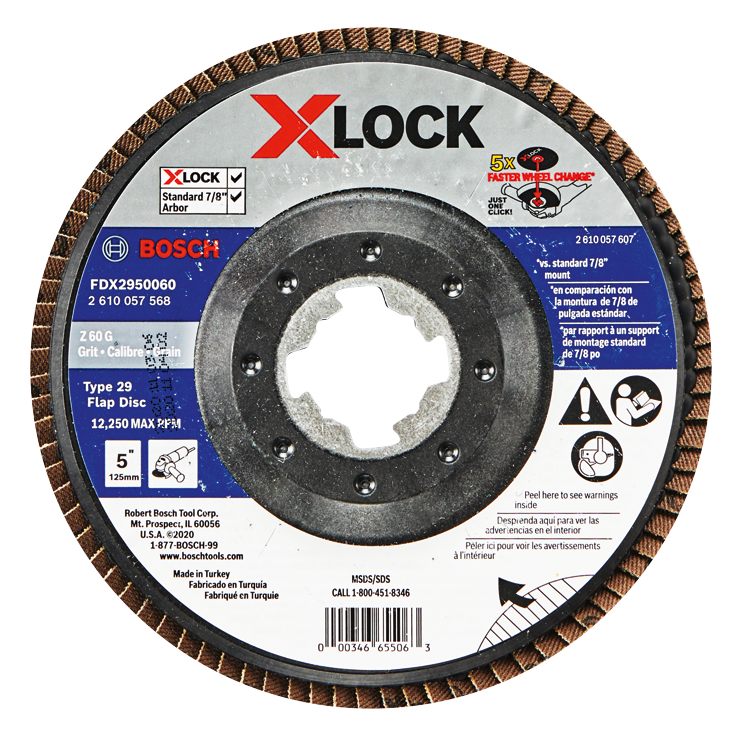 Bosch X-LOCK flap discs are backward compatible with standard 7/8 In. arbor mounts