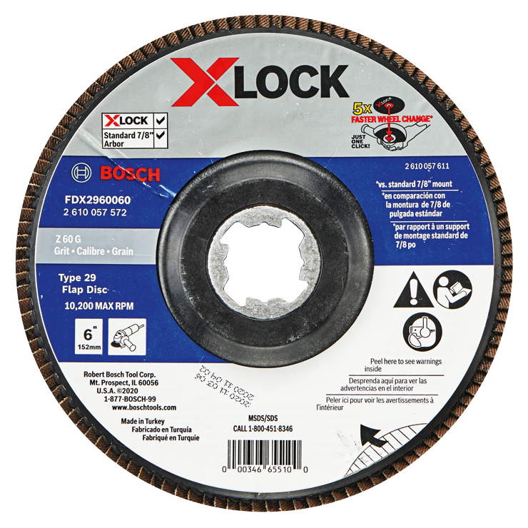 Bosch X-LOCK flap discs are backward compatible with standard 7/8 In. arbor mounts