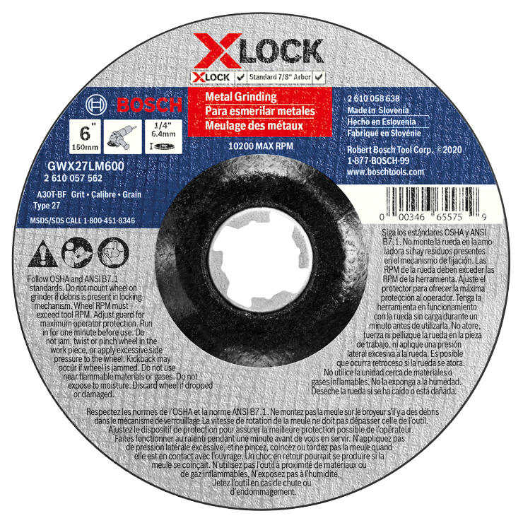 Bosch X-LOCK abrasive wheels are backward compatible with standard 7/8 In. arbor mounts