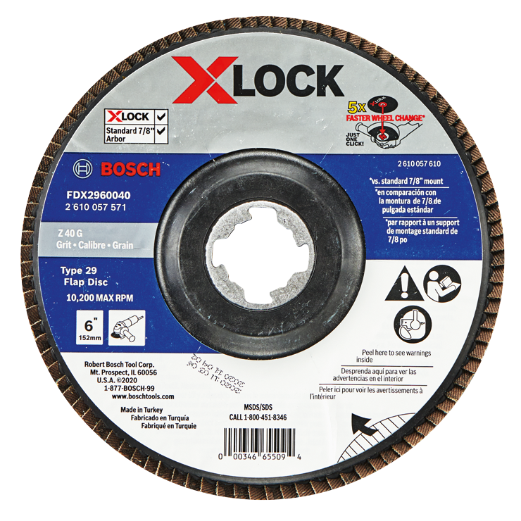 • Bosch 6 In. X-LOCK Arbor Type 29 40 Grit Flap Disc - FDX2960040 – Genuine Bosch Commerical replacement part designed for a precise factory fit and reliable performance.
