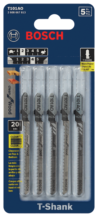 Bosch 5 pc. 3-1/4 In. 20 TPI Clean for Wood T-Shank Jig Saw Blades - T101AO