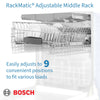 The RackMatic middle rack easily adjusts to three different heights and up to 9 separate rack positions, allowing taller items like stemware to fit in the middle rack while leaving room for pots and pans below.