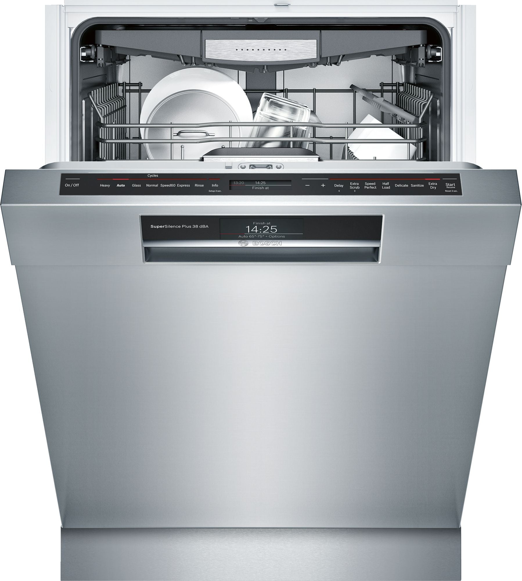 With Bosch PrecisionWash, intelligent sensors continually scan and check the progress of dishes throughout the cycle, and powerful, precision spray arms go to work targeting every item of every load.