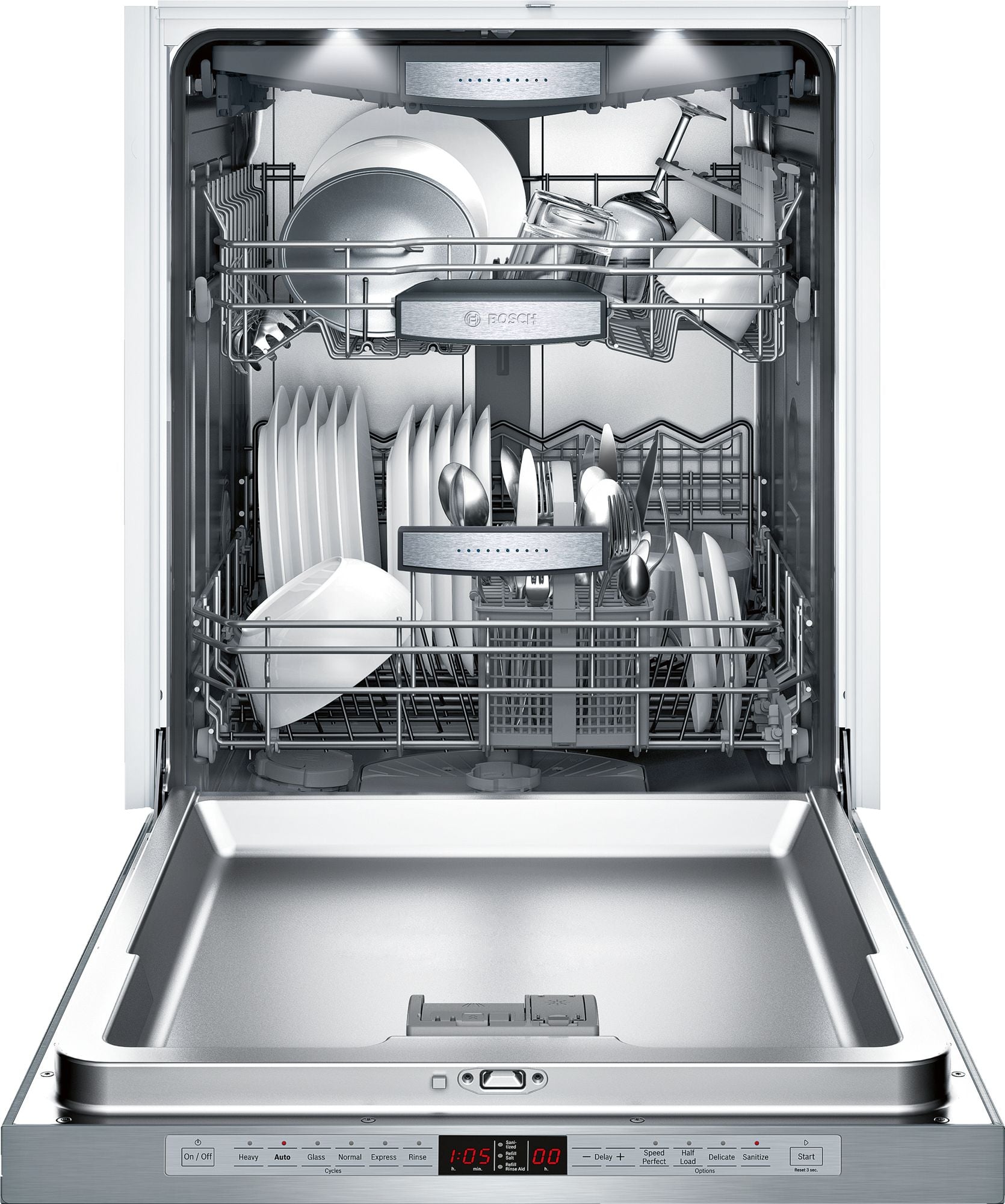 Tell us what's wrong with your Bosch SHE9PT55UC/87 Benchmark Series 24 Inch Built In Recessed Handle Dishwasher - Stainless Steel, and we can predict what parts you need to fix it.